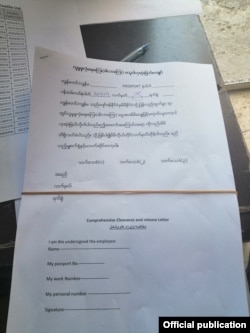 "နှဈကွီးသမားတှထေဲဆိုရငျ ဗိုကျကွီးသညျ နှဈ ယောကျပဲပါပါတယျ။ ဒီခါလာကွေးတှေ ဒီလူမှုဖူလုံရေးကွေးတှေ မယူပါဘူးဆိုပွီး သူတို့က အတငျးစာခြုပျနဲ့ လကျမှတျထိုးခိုငျးတာ အဲ့ဒီ့စာခြုပျကို ကလေးတှကေ ပွနျခငြျဇောနဲ့ ပွနျရရငျပွီးရောဆိုပွီး လကျမှတျထိုးပေးလိုကျကွတာ။ အဲ့တော့ ကိုယ့ျရပိုငျခှင့ျတှေ တခုမှ မရတော့ဘူး။ မွနျမာတှကေ အရမျးကွောကျပွီးတော့ ထိုးကွတယျ။ အမြားကွီးပဲ အယောကျ ၁၀၀ ကြောျတောငျ အဲ့ဒီ့ထဲမှာ ညီမတို့မပါဘူး။ ညီမတို့ကကတြော့ ပွနျမယ့ျစာရငျး ဖောငျပဲဖွည့ျရသေးတယျ။ ဒီခါလာကွေးကိုယူမယျဆိုတာ သူတို့ကိုပွောပွီးသားဖွဈတဲ့အတှကျ အခုသူတို့စာရငျးထဲမှာ မပါဘူး။ အခုသူမြားစကျရုံတှကေ ပိုကျဆံတှကေို ပေးသင့ျတာတှေ ပေးပွီးသှားပွီ။ ဒီစကျရုံက ပိုကျဆံနဲ့ပတျသကျပွီး ပေးဖို့ မရှိဘူး ညီမတို့ကလညျး အဲ့ပိုကျဆံလေးကို စောင့ျနတော။ လကျထဲမှာလေ တပွားမှကို မရှိတော့တာ။ ညီမတို့ ဒီမှာ အလုပျမလုပျရတဲ့ ၃ လ အခုဆို ၄ လ ရှိပွီ အဲ့ဒါကွေးလညျးရမယျ၊ အပွငျမှာ အိမျဌားနတေဲ့သူဆိုရငျ အိမျဌားကွေးက အဲ့တာက အစ ရမယျလို့တော့ သူတို့ကပွောထားတယျ။ ဒီပိုကျဆံတှေ မရသေးဘူးလို့ ပွောတဲ့သူက လှမျးပွောတော့ မွနျမာအစိုးရဘကျကနပွေီးတော့ ဒီပိုကျဆံတှကေို ဒီကလေးတှရေဲ့ ရပိုငျခှင့ျမှနျသမြှကို ပေးရမယျပေါ့။ မပေးဘဲနဲ့ဆိုရငျ ဟိုဘကျကနေ လာမခေါျဘူးလို့ပွောတယျ။ အဲ့ဒါ ညီမတို့ HR ကပွောတယျ ညီမလညျးပွနျကွားတာပေါ့နောျ ၅၀-၅၀ လို့ပွောတယျ ဒါပမေဲ့ အခုကလေးတှကေ အခု တရာနဲ့တယောကျကို သူတို့က စာခြုပျနဲ့ကို လကျမှတျထိုးခိုငျးထားတာ။"
