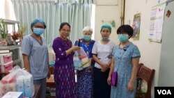 “အစ်မတို့အနေနဲ့ စိန်ခေါ်မှုကတော့ ဘာအခက်အခဲရှိလဲဆိုရင် ကိုယ့်ကို ကာကွယ်မယ့် PPE တွေ လုံလောက်စွာ ရရှိဖို့ပါပဲနော်။ အဲ့ဒီတော့ နိုင်ငံတော်အစိုးရက မပေးဘူးလားဆိုရင် ပေးပါတယ်။ နည်းတာပေါ့နော်။ ခန္ဓာကိုယ်တခုလုံးဝတ်တဲ့ PPE ပေါ့။ cover all ဆိုတာလိုတယ်။ နောက်ပြီးတော့ respirator လို့ခေါ်တဲ့ ဗိုင်းရပ်စ်တွေကို ကာကွယ်နိုင်တဲ့ N95 လို့ ခေါ်တာပေါ့နော်။ အဲ့ဒတွေလိုတယ်။ ဆိုတော့ အစ်မတို့ကတော့ ဆေးရုံအုပ်ကြီး ဆီမှာလည်း အစ်မတို စာရေးပြီး တောင်းတယ်။ ဆေးရုံအုပ်ကြီးကလည်း နေပြည်တော်ကို တောင်းတယ်။ ကံအားလျော်စွာပဲ တတိယမြောက် COVID-19 case က အစ်မတို့ဆေးရုံက တွေ့တာ ဖြစ်နေတယ်။ case က တွေ့သွားတယ် ဆိုတာနဲ့ အင်းစိန်ဆေးရုံမှာ ကြောက်တာလည်း ရှိတယ်။ ဒါပေမဲ့ ဟာ...အင်းစိန်ဆေးရုံမှာ တွေ့တယ်ဆိုတာနဲ့ ပြည်သူတွေက အားတက်သရော လာလှူကြတယ်။ အဲ့ဒီတော့ အစ်မတို့ စိတ်ပူနေတဲ့ N95 တွေလည်း လှူတယ်။ PPE တွေလည်း လှူတယ်။ ဝတ်စုံတွေ နှာခေါင်းစည်းတွေကအစ လှူကြတယ် ဆိုတော့ ယှဉ်လို့ရှိရင်တော့ ရန်ကုန်ထဲက ဆေးရုံတွေမှာ အစ်မတို့ ဆေးရုံက နည်းနည်းလေး လှူဒါန်းတာကို ခံရတယ်ပေါ့နော်။”