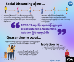 မွနျမာနိုငျငံမှာ လကွေောငျးလိုငျးက ဝငျရောကျလာသူတှကေိုတော့ facility quarantine ဆိုတဲ့ ဆေးရုံဆေးခနျးနဲ့ကနြျးမာရေးဌာနက သတျမှတျပေးထားတဲ့ နရောတှမှော ၁၄ ရကျစောင့ျကွည့ျဖို့ ညှှနျကွားထားပါတယျ။ ထိုငျးနိုငျငံ နယျစပျကတဆင့ျ ဝငျရောကျလာတဲ့သောငျးဂဏနျးရှိတဲ့ မွနျမာတှကေိုတော့ Home quarantine ဆိုတဲ့ အိမျမှာ သီးခွားထားစောင့ျကွည့ျဖို့ဆိုပွီး သကျဆိုငျရာဒသေတှကေို ပွနျလှှတျခဲ့ပါတယျ။ ဒါပမေဲ့ ထိုငျးနိုငျငံကဝငျလာသူတဦးမှာ ကိုရိုနာဗိုငျးရပျဈ တှေ့ခဲ့တဲ့နောကျ အဲဒီ Home quarantine လုပျနသေူတှကေို community quarantine ကြေးရှာဒသေအလိုကျ တနရောမှာ စုထားပွီး စောင့ျကွည့ျဖို့ဆိုတဲ့ အစီအစဉျဖွဈလာတာပါ။