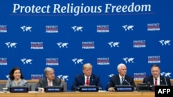 အမေရိကန် သမ္မတ ဒေါ်နယ်ထရမ့်က ဘာသာရေး လွတ်လပ်ခွင့်ဆိုင်ရာအစည်းအဝေးတစ်ရပ်ကို နယူးယောက်မြို့ ကုလသမဂ္ဂ အထွေထွေ ညီလာခံ ကျင်းပနေစဉ်အတွင်း တနင်္လာနေ့မှာ ဦးဆောင်ကျင်းပခဲ့ပါတယ်။ အဲဒီအစည်းအဝေးမှာ အမေရိကန်ပြည်ထောင်စုဟာ ဘာသာရေးကြောင့် အဖိနှိပ်ခံနေရသူ ဒုက္ခသည်တွေရဲ့ ခံစားချက်တွေနဲ့ သဘောထားတွေကို အမြဲတမ်း ထုတ်ဖော်ပြောကြားပေးသွားမယ်လို့ သူက ကတိပေးခဲ့ပါတယ်။ ဗွီအိုအေ သတင်းထောက် Jeff Custer သတင်းပေးပို့ထားတာကို အခြေခံပြီး ကိုရဲမင်းထွန်းက တင်ပြပေးပါမယ်။