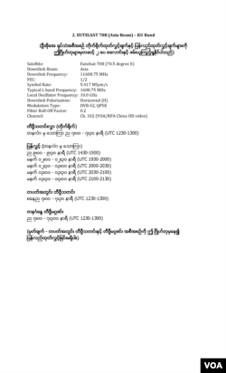 တီဗွီသတင်းလွှာနှင့် မဂ္ဂဇင်းအစီအစဉ် ထုတ်လွှင့်ချိန်နှင့် မီတာလှိုင်းများ
